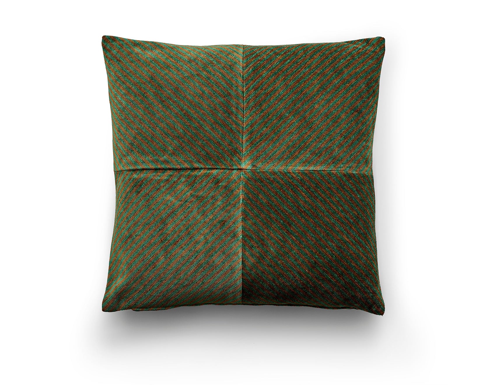 Introducing a sophisticated addition to your home decor: a beautifully designed fern cushion by Nils Juul Eilersen. Measuring 50 x 50 cm, this cushion features an intricate diagonal striped pattern in serene shades of green and brown, arranged in a captivating geometric design that exudes contemporary elegance.